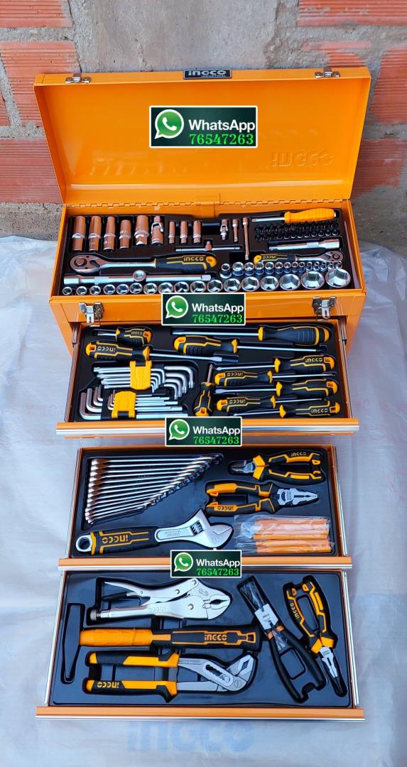 Maleta metálica de herramientas con 3 bandejas y 132 piezas en total INGCO original de manejo industrial material cromo vanadio productos nuevos de caja cerrada